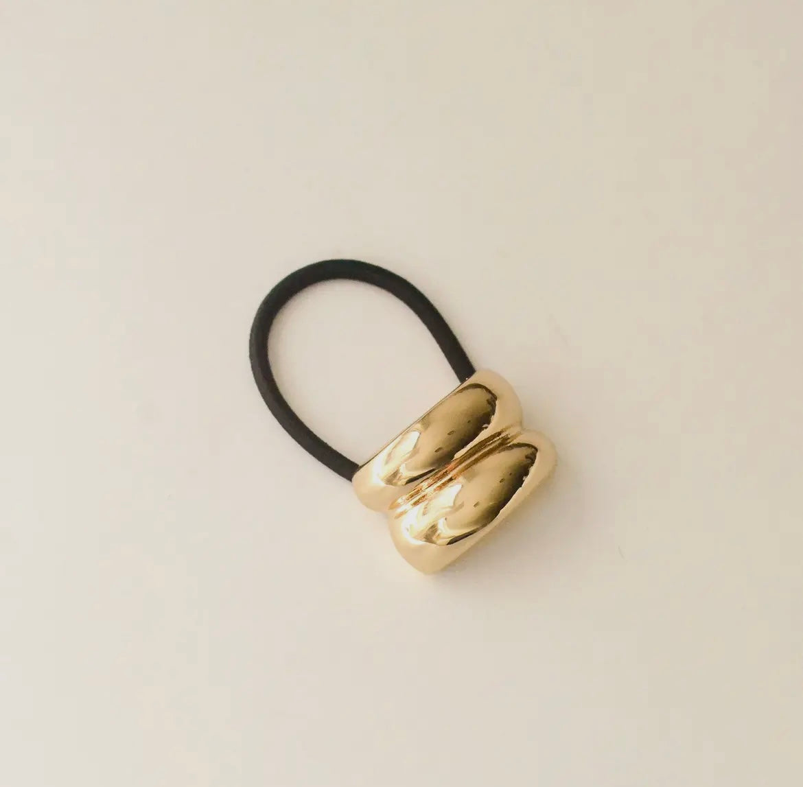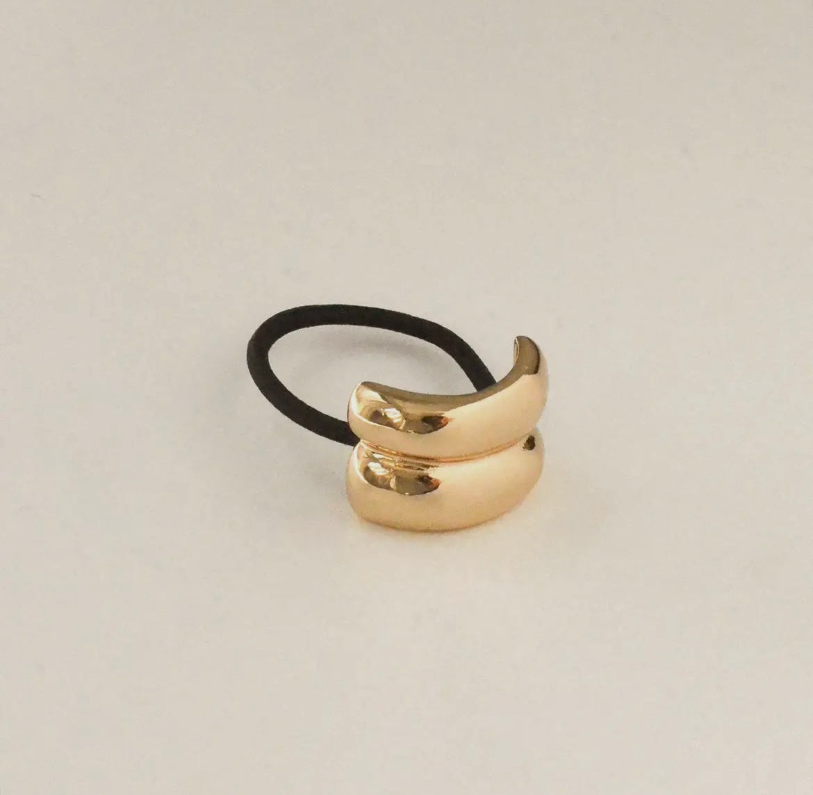 The Bowie hair tie features a sleek and minimal double cuff design.  This eye-catching metal cuff adds an elegant and polished touch to any hairstyle.