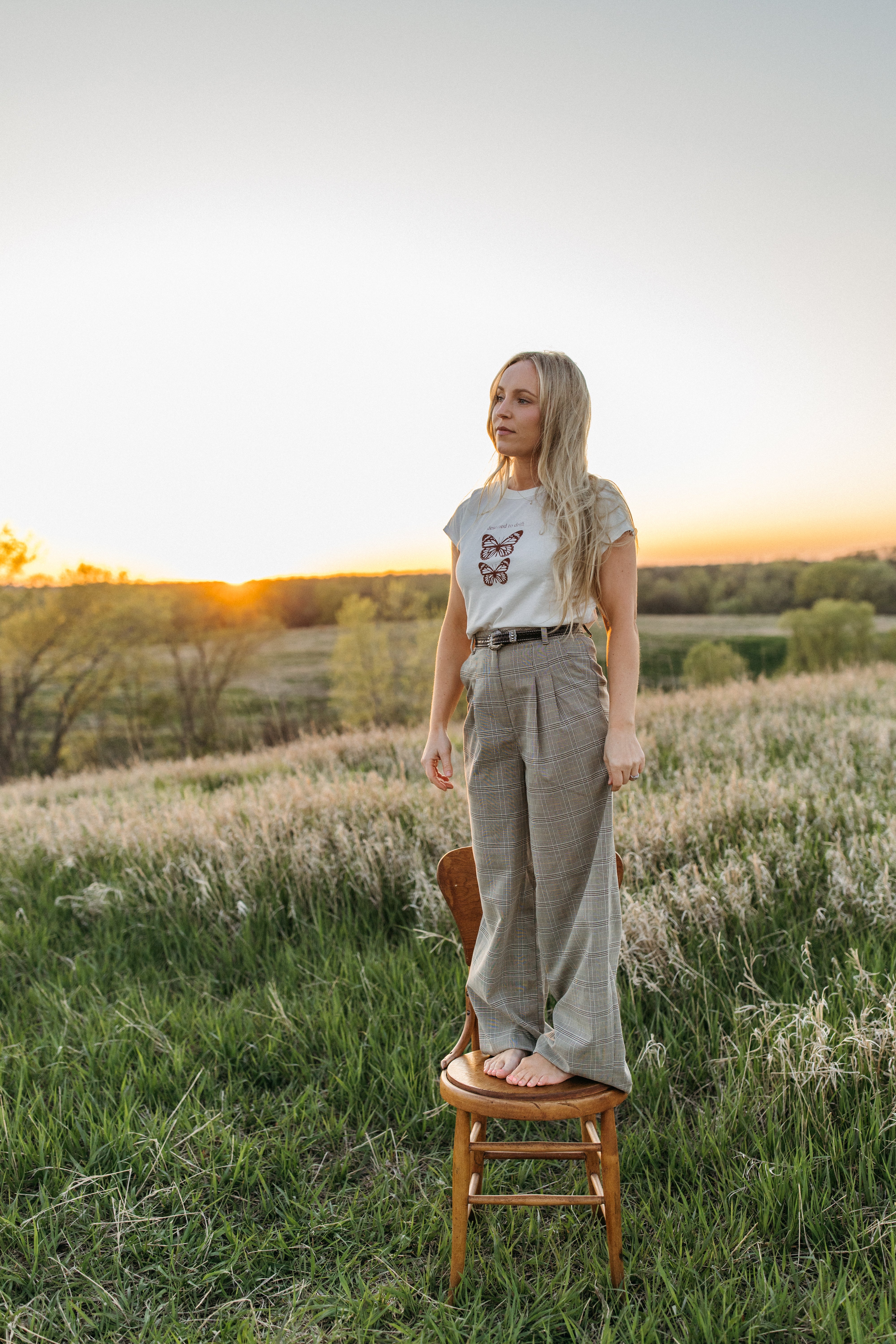 This tee is all about honoring the individual journey.  A soft reminder that when we let go of timelines and expectations, we create space for transformation. Featuring a delicate butterfly design, it symbolizes fragile strength, quiet grace, and the beauty of unfolding in your own time.