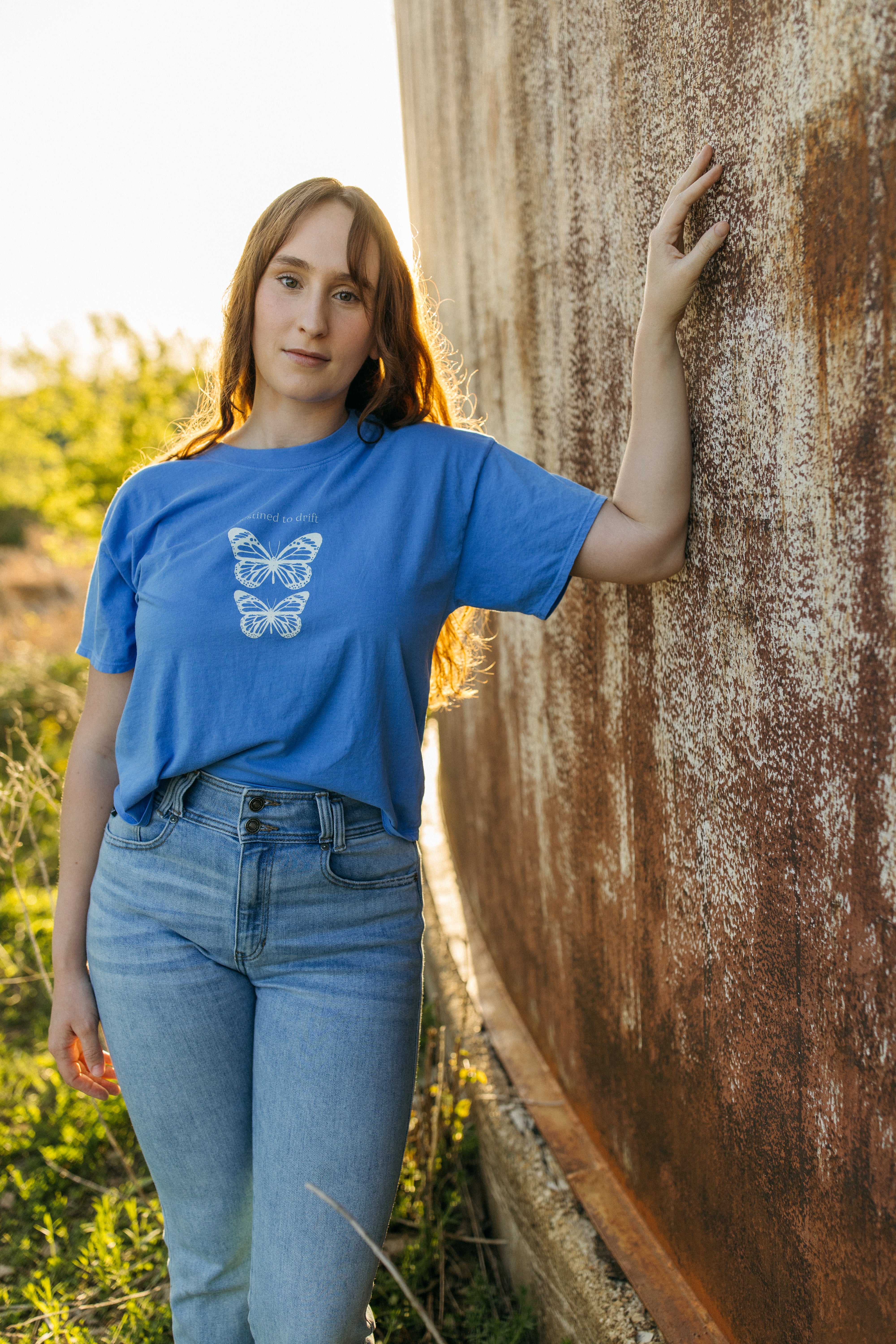 Destined to Drift Tee – Provence Blue Butterfly Shirt | Collectively Kimberly Line – Wild Features Collective