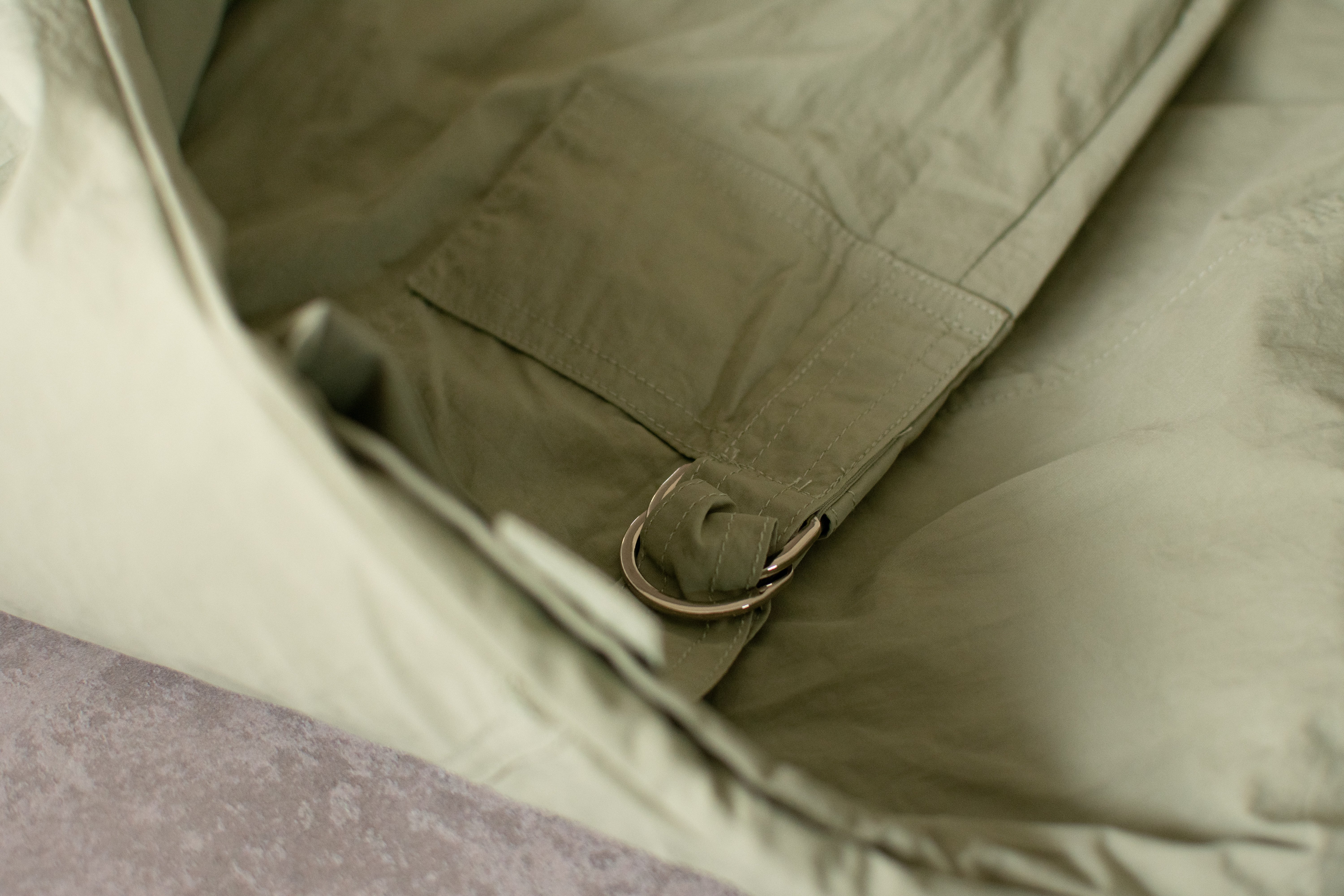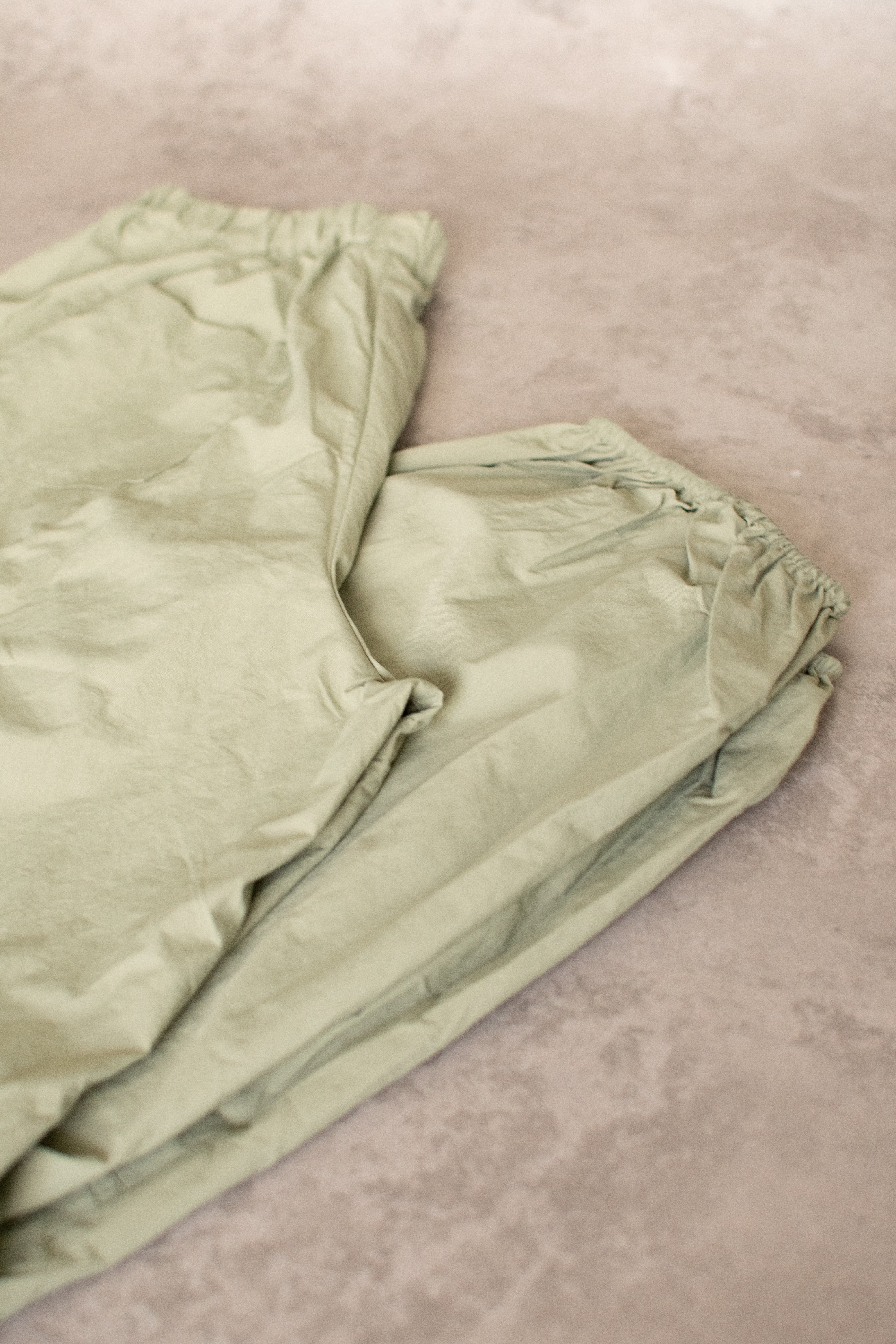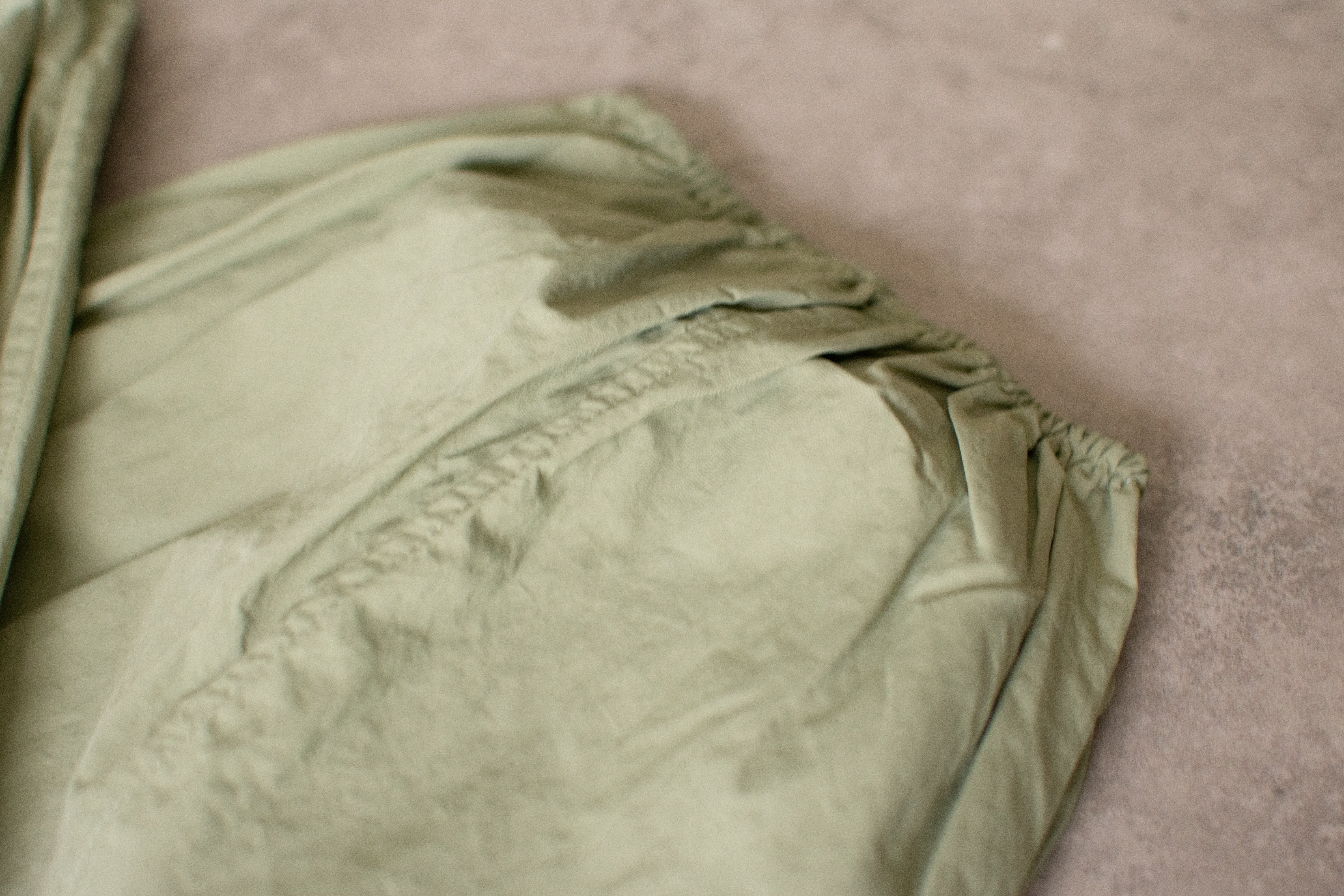 Balloon cargo pants in a refreshing light olive shade.  Lightweight and functional.