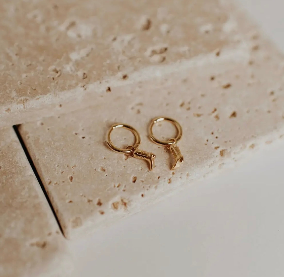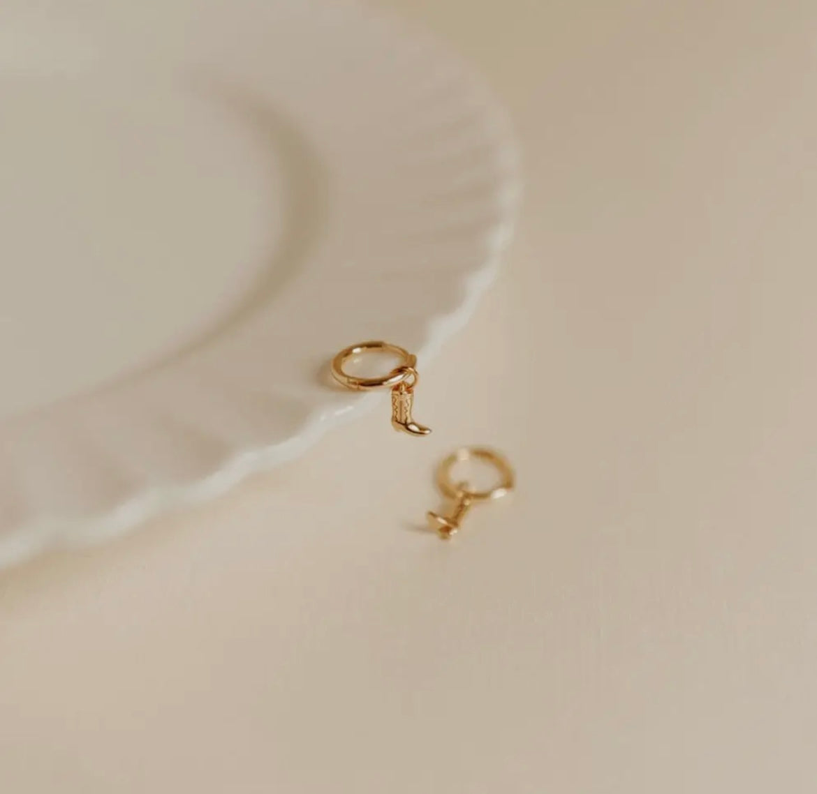 Calling all cowgirls!  A cute little boot charm attached to a dainty, high-quality gold hoop with a huggie style closure.  Gold vermeil over .925 sterling silver and hypoallergenic.